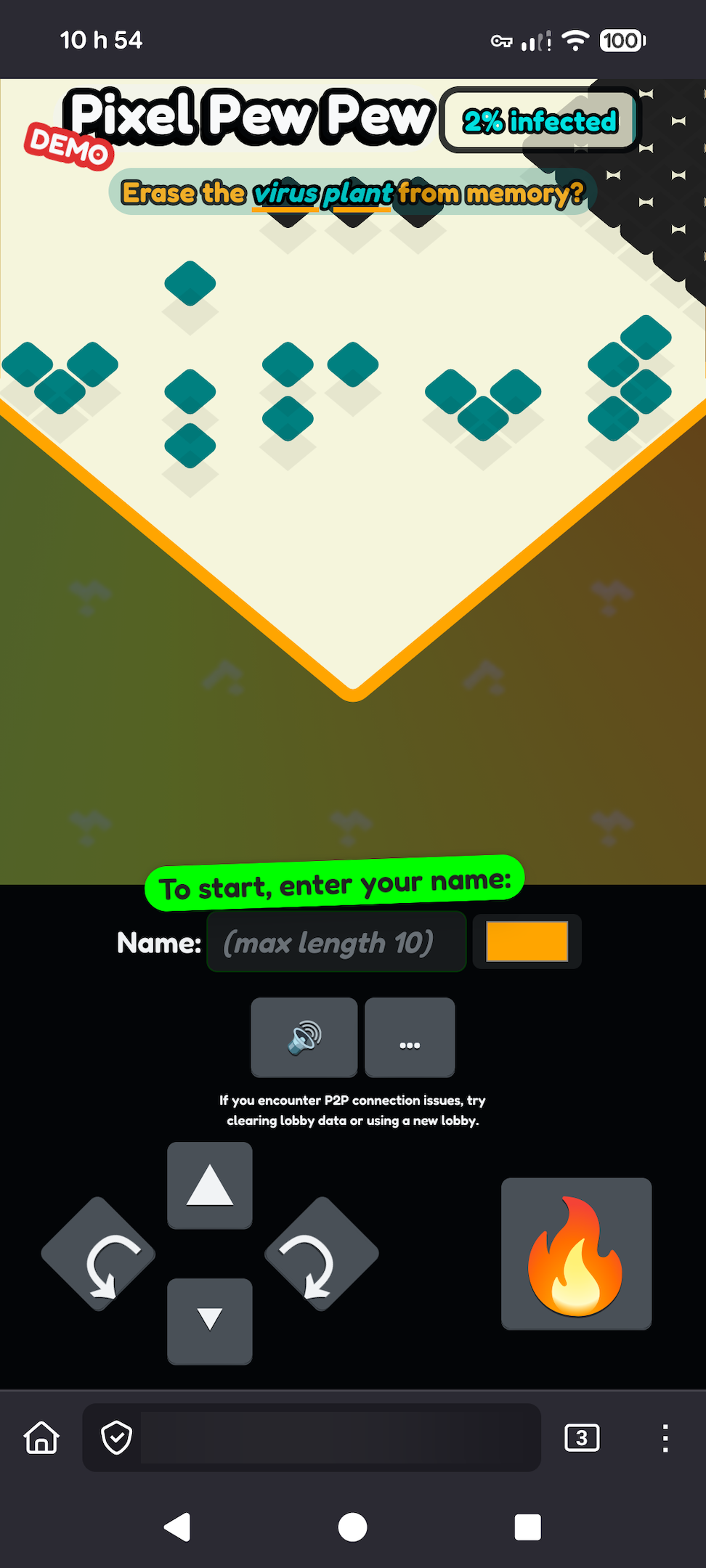 if you encounter P2P connection issues, try refreshing the page and using a new lobby code.